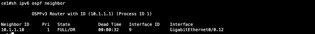 OSPF configured on the 2 CE devices confirming the layer 2 circuit.