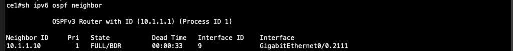 OSPF configured on the 2 CE devices confirming the layer 2 circuit.