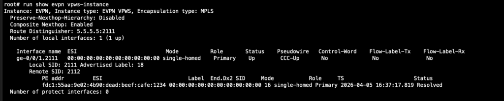 The VPWS instance will now be up.